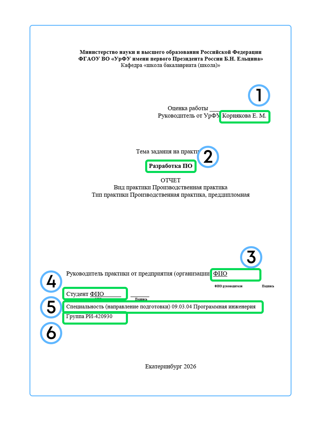 3-(2) Если практика на кафедре, то «Корнякова Елена Михайловна»